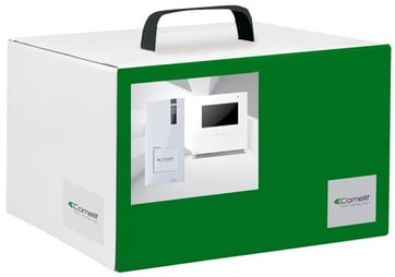 El kit está formado por 1 grupo audio/vídeo en color art. 4682KC, 1 módulo con 1 pulsador art. 33411M, 1 caja de empotrar art. 3110/1, 1 bastidor con marco art. 3311/1S, 1 alimentador art. 1595, 1 alimentador art. 1441B y 1 gateway master art. 1456. El kit preprogramado se encuentra listo para usar, salvo para la configuración del gateway 1456 que se tiene que efectuar mediante el servidor web interno. El kit se puede ampliar con otros productos del catálogo VIP.